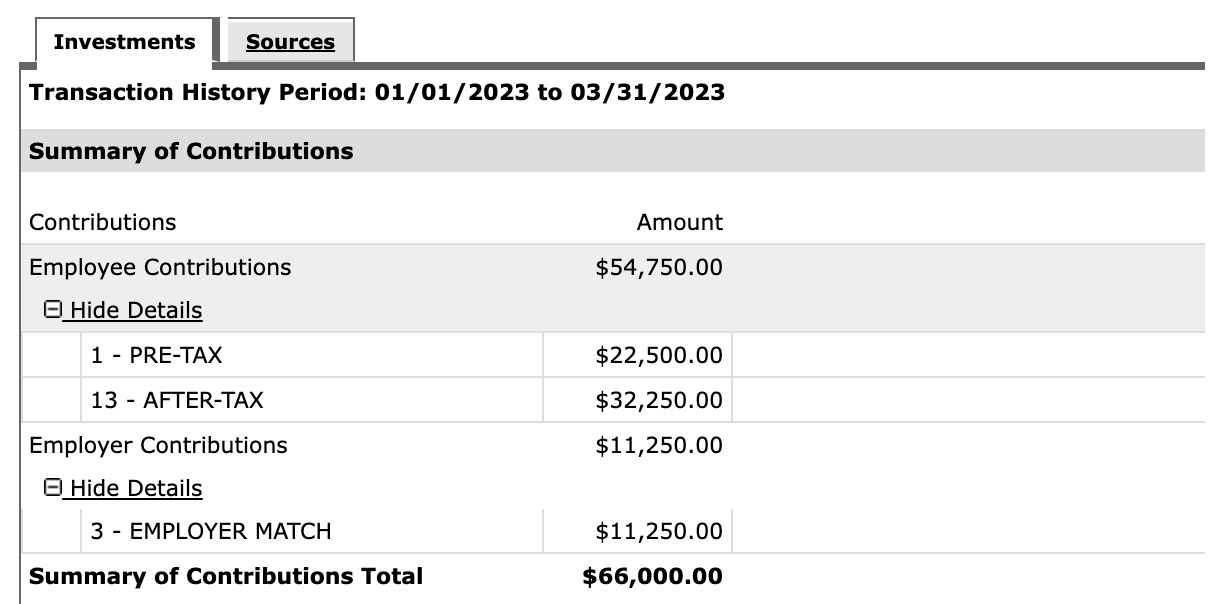 $66,000 towards maxing out my partners Uber 401k + After Tax.