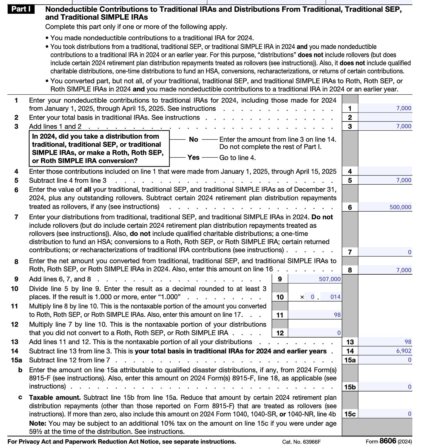 Let's say in 2024 Brandon has $500,000 in a rollover ira from a past employer. He heard about this "back door roth" thing and created a new traditional ira, contributed $7,000 and then converted it to a Roth IRA.