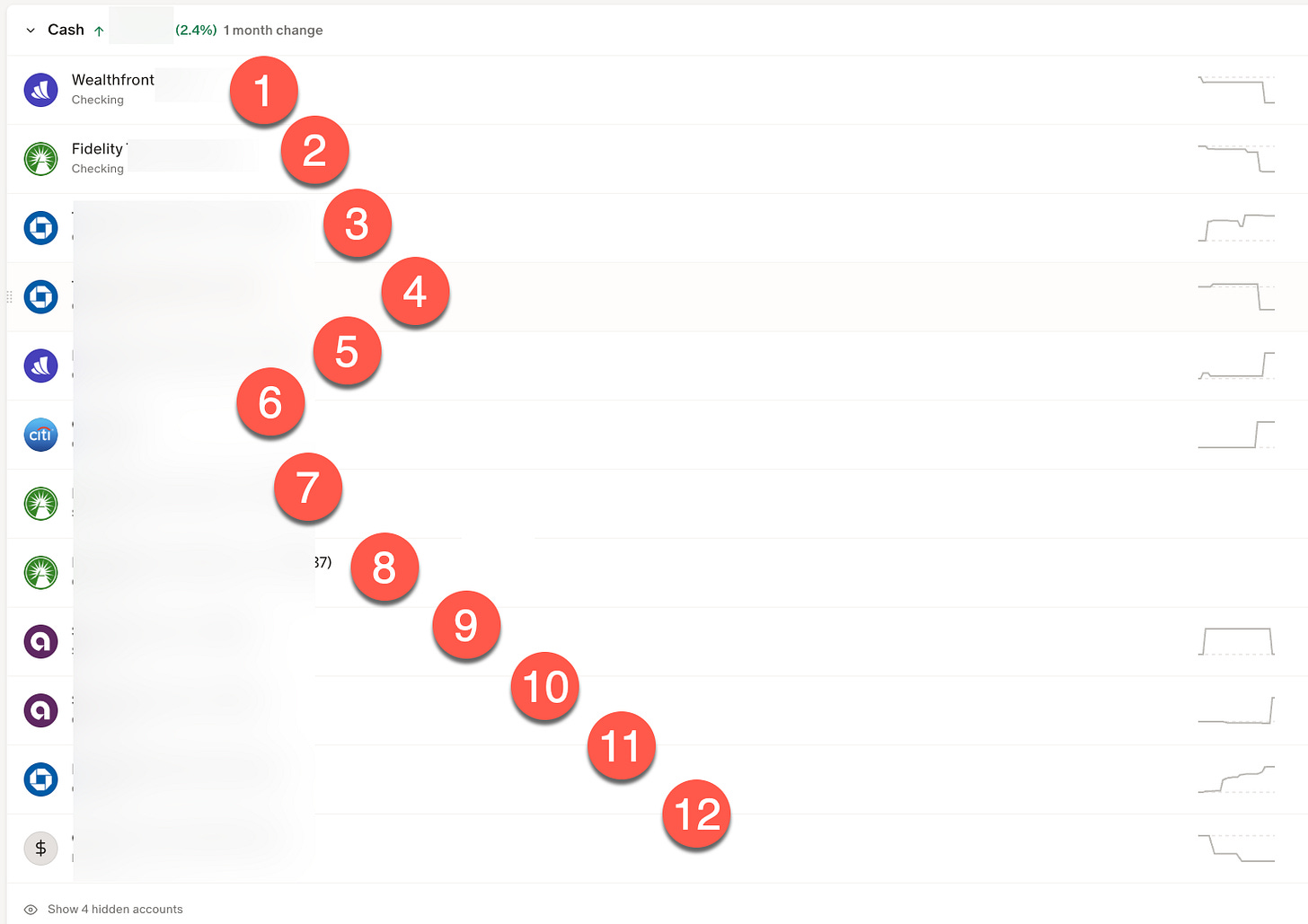 Over time, I have made hundreds of small optimizations to my accounts. I have a web of bank accounts from past sign up bonuses. Dozens of credit cards from my past of churning credit card points. Investment accounts scattered across institutions from past employers.